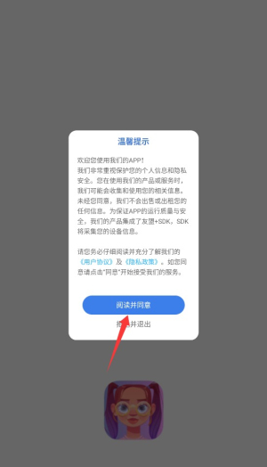 1、首次启动应用时,系统会显示用户协议和隐私政策,阅读后点击同意按钮进入主界面。