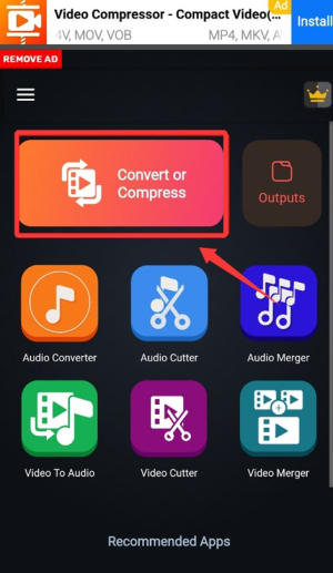 1、启动应用后,在主界面找到“转换或压缩”功能并点击,这是核心的视频处理入口。