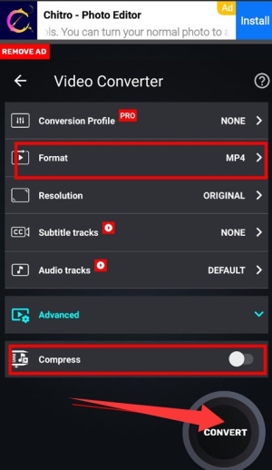 4、您还可通过“compress”调整视频大小,最终点击“convert”按钮即可开始转换。