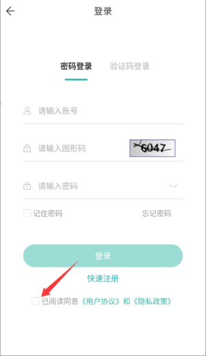 2、在登录页面勾选同意用户协议与隐私政策条款,进入身份验证步骤。