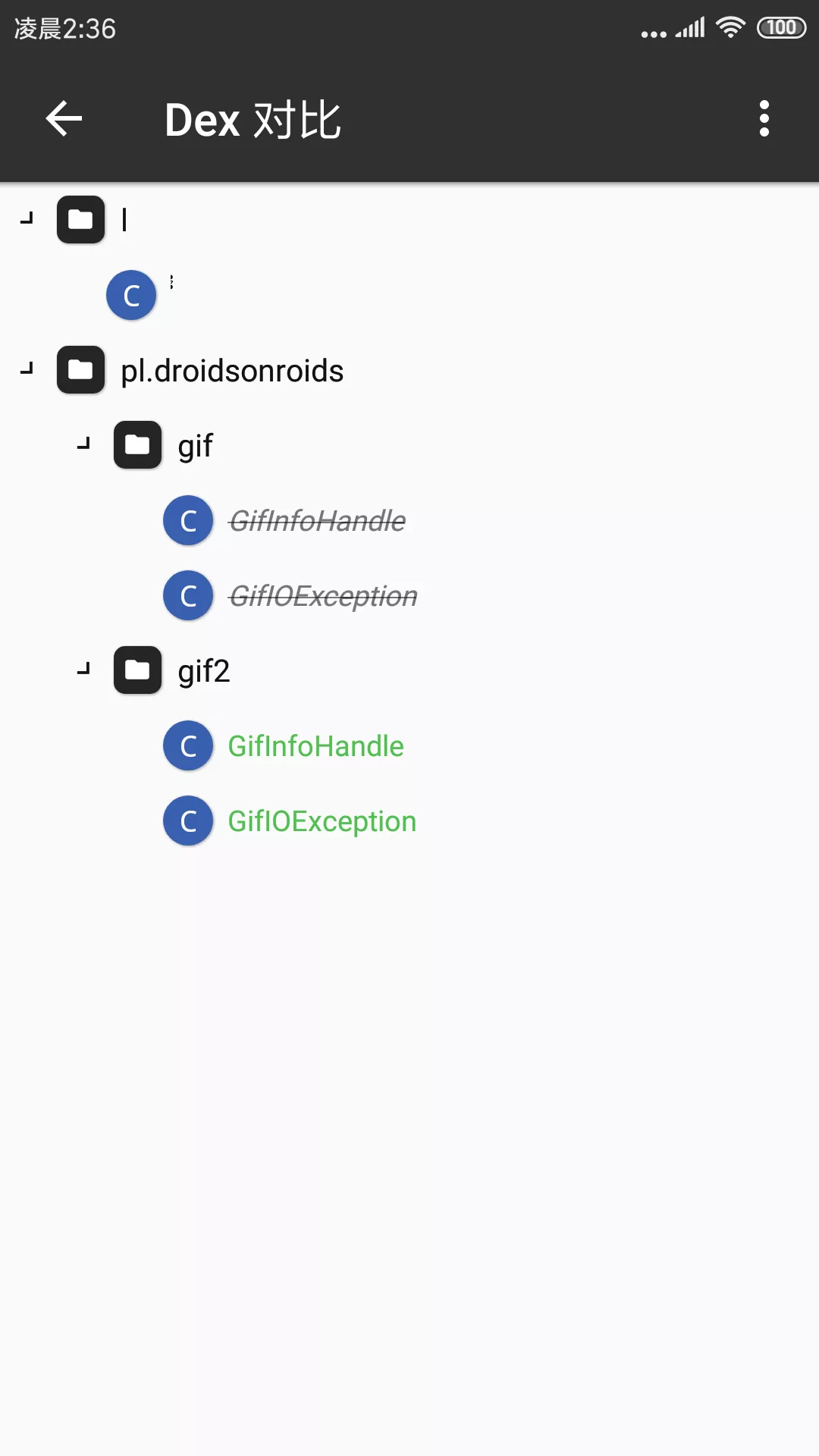 选中两个 APK 文件或者两个 DEX 文件长按即可进行 DEX 对比。
