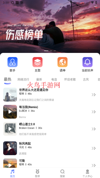 1、千万曲库:拥有庞大的铃声资源库,涵盖流行歌曲、经典乐曲、自然音效等多种类型,无论您喜欢哪种风格的音乐,都能在这里找到心仪的铃声。