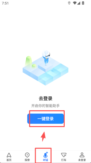 4、切换到 “对话” 页面,会显示 “去登录” 提示,点击 “一键登录” 按钮,可开启智能助手相关功能。