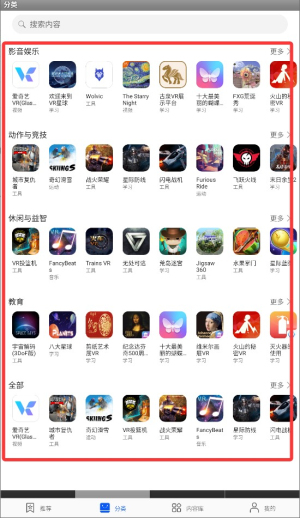 2、在主界面或菜单中找到并点击“分类”或“应用商店”等入口,浏览VR应用库。