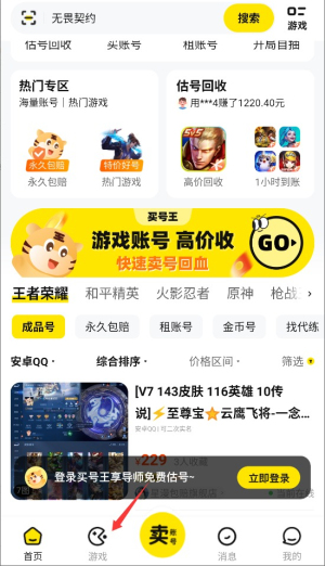 2、进入应用主页面后,在导航栏或功能区域中找到并点击“游戏”或“游戏账号”分类。