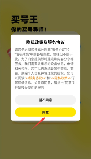 1、首次启动应用时,系统会显示用户协议和隐私政策,阅读后点击同意按钮进入主界面。