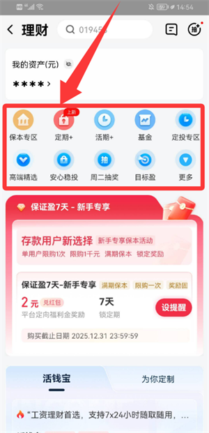 1、理财服务:新手专享福利,稳盈定期产品期限灵活,优选基金专栏适配不同需求,助力稳健理财。