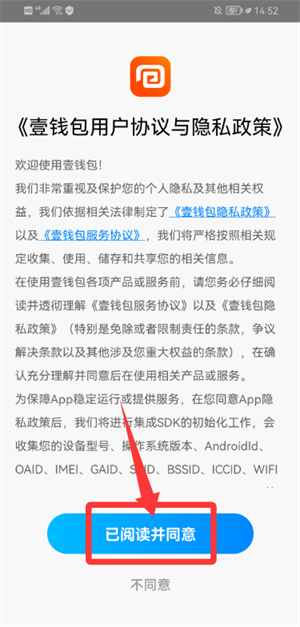 1、启动应用后确认用户协议与隐私政策,点击同意按钮继续使用。