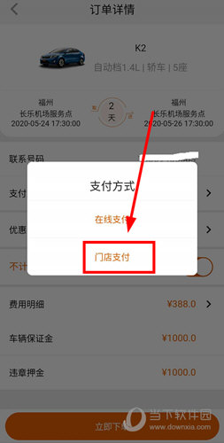 2、然后选择支付方式为”门店支付“,到店支付之后跟店员要求开发票即可,在线支付目前还没有发开票的功能。