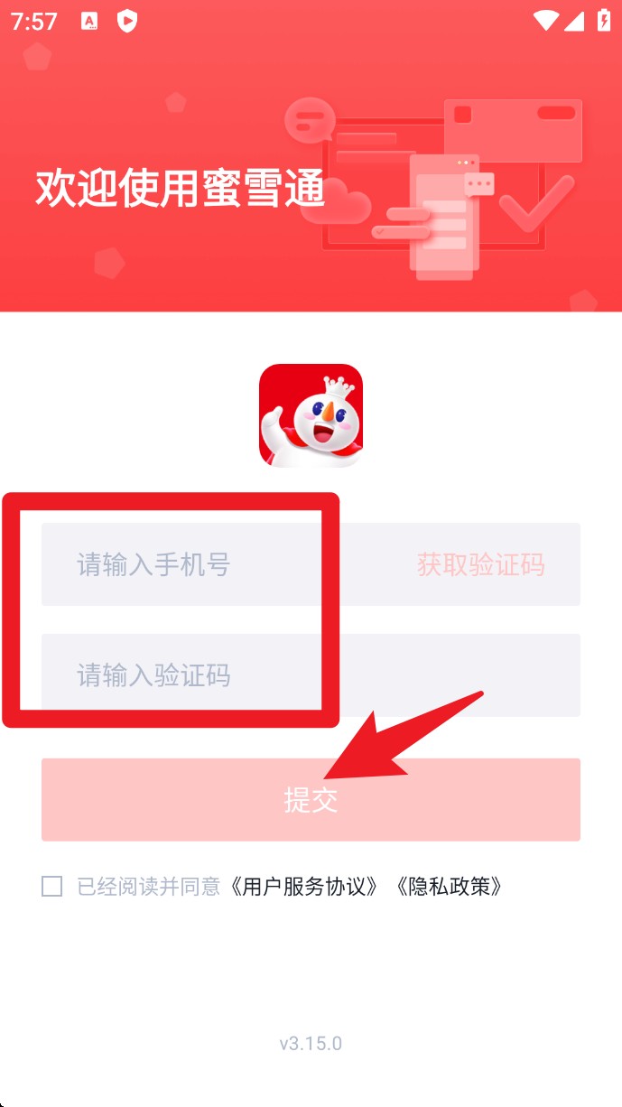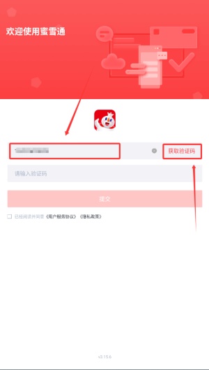 1. 打开 App 后输入手机号与验证码,点击「提交」按钮完成身份验证并进入首页。