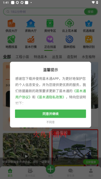 苗木通app是苗木花卉交易信息中心官方指定平台,撮合交易覆盖全国,给园林行业的供求信息对接提供高效服务,是苗木人必备工具之一。在这里不仅可以高效的对接苗木资材,更能结识更多园林同行好友,了解最热的苗木资讯,交流最地道的苗木经营心得。