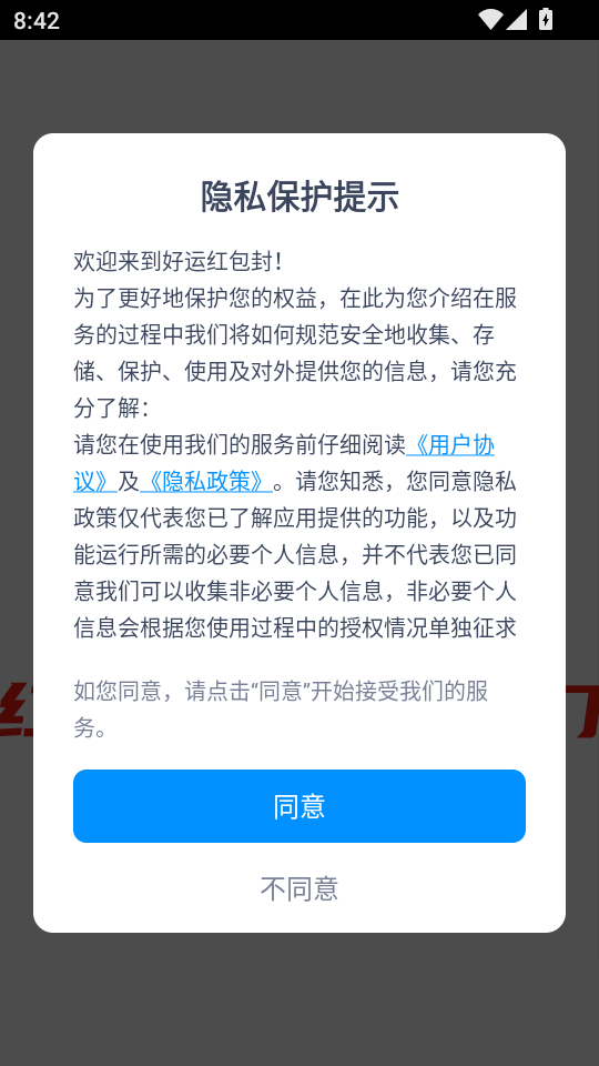 1、首先打开软件阅读“隐私保护提示”后,点击“同意”按钮进入APP