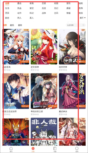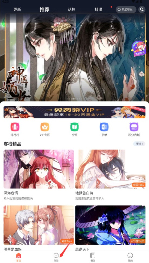 2、在主界面中,可找到并点击“分类”或“漫画分类”功能按钮,进入类别页面。