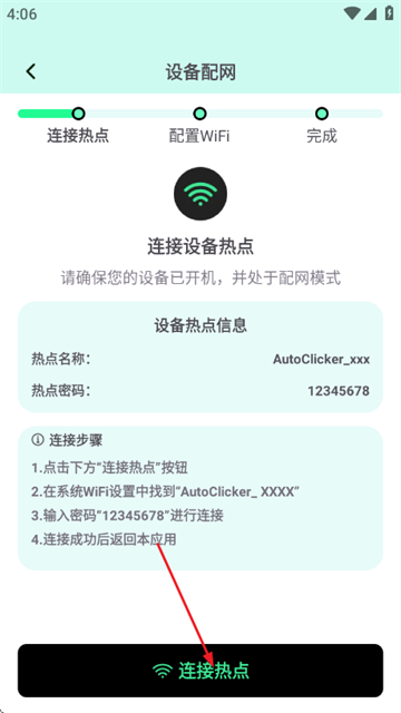 2、然后继续点击连接热点