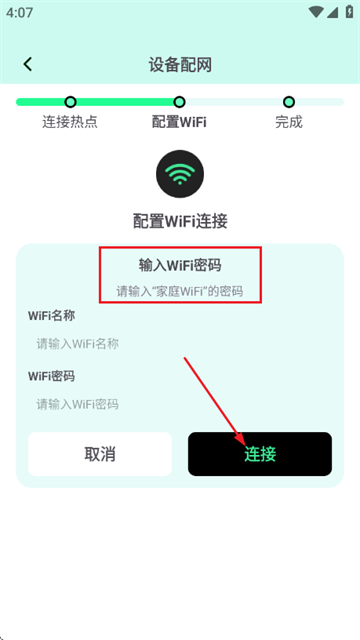 3、最后输入WiFi名称与密码点击链接即可