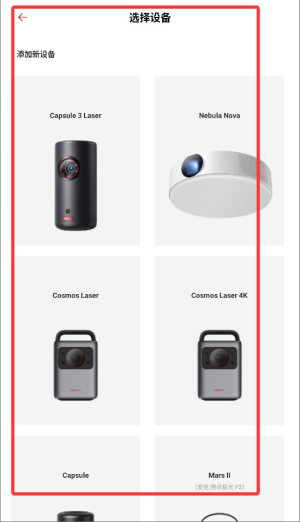 3、系统将自动搜索或要求您从列表中选择您的Nebula投影仪型号,请点击确认添加。