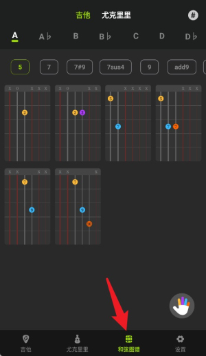 4.和弦图谱界面提供丰富的和弦指法图,涵盖多种调性和复杂和弦类型,便于练习。