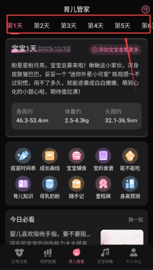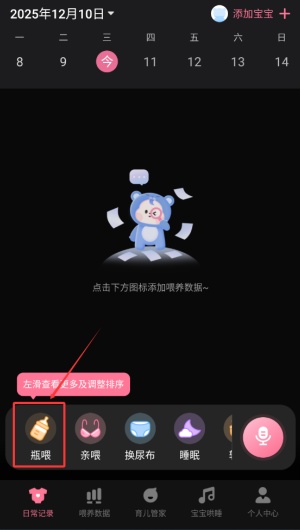 1.在这里宝宝的一切数据都可以在这里进行记录,包含配方奶,母乳亲喂,母乳瓶喂等各种喂养数据。
