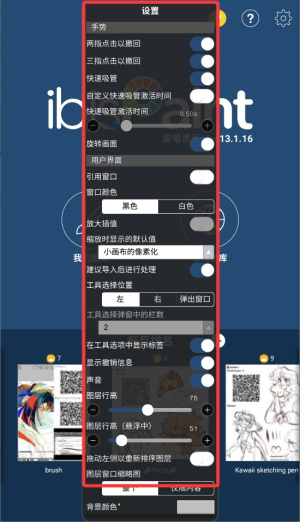 3、点击后即可进入设置页面,根据个人需求调整画笔、画布等相关功能参数。