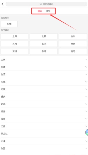 3、在位置选项中,首先选择您所处的“海外”或“国内”区域范围。