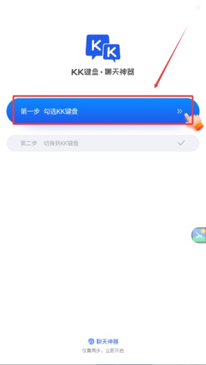 2、进入引导流程后,在设置选项中勾选并启用“KK键盘”相关服务。