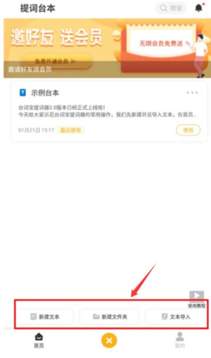 2、进入主页面后点击加号,可见“新建文本”、“新建文件夹”及“文本导入”三项功能。