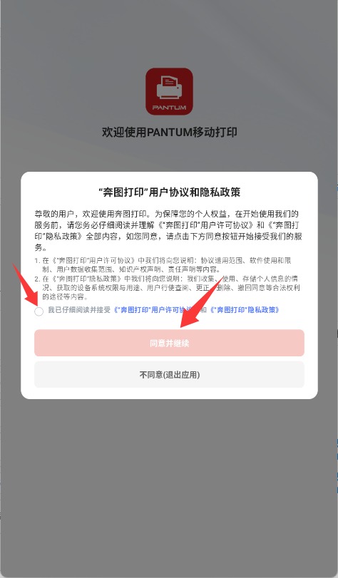 2、仔细阅读并点击“同意”勾选用户协议与隐私政策,完成初始授权设置。