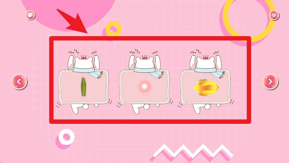 1. 打开游戏后,点击屏幕上的左右箭头,可以切换不同猫咪互动玩具,如激光点、猫薄荷、金鱼等。
