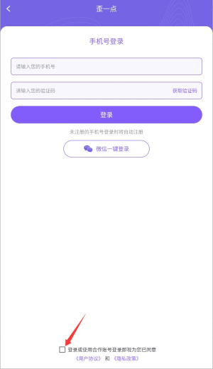 3、在登录页面勾选同意用户协议与隐私政策条款,进入身份验证步骤。