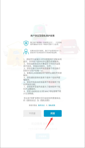 1、首次启动应用时,系统会显示用户协议和隐私政策,阅读后点击同意按钮进入主界面。