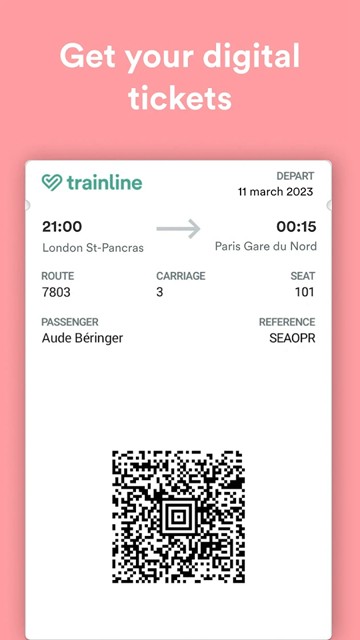 2、此外,借助我们的实时列车时刻(英国铁路、Trenitalia、Renfe 和 SNCF 路线)、价格提醒、手机车票/车票和座位选择(如果有),您始终可以掌控自己的行程。