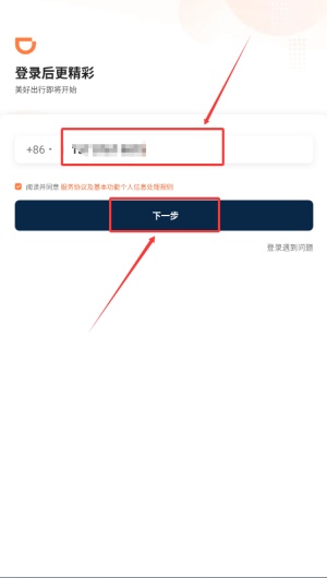 1、在注册或登录页面,输入您的手机号码并点击“下一步”按钮。