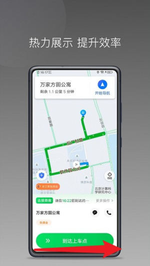 2、地图界面展示热力线路及路线指引,提升接送效率。