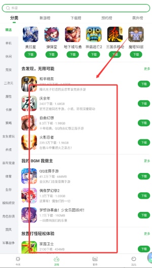 3.分类:将应用分为了,应用,游戏,必备。让你走到哪用到哪