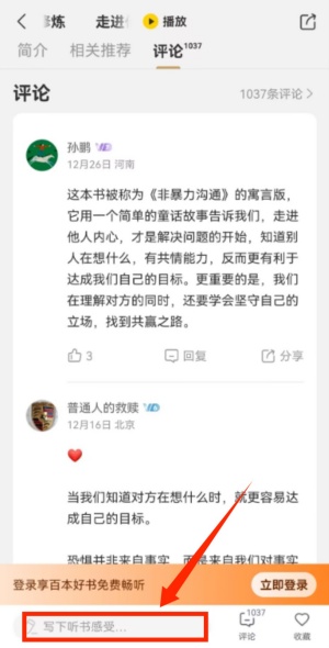 4、听完书后,您可以在评论区留下个人的阅读感想与心得。