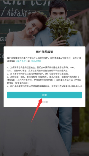 1、首次启动应用时,系统会显示用户协议和隐私政策,阅读后点击同意按钮进入主界面。