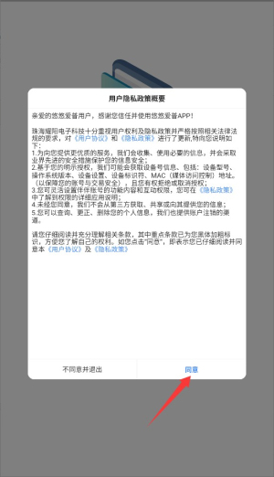 1、首次启动应用时,系统会显示用户协议和隐私政策,阅读后点击同意按钮进入主界面。