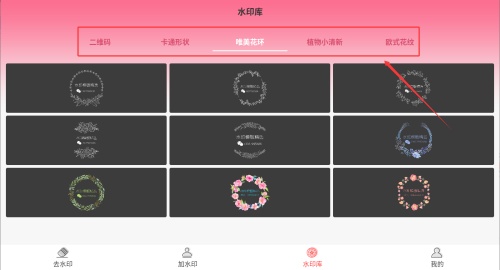 3、进入后可根据需要浏览不同类型的水印分类,点击选择相应类别。