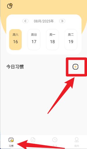 1、在“习惯”页面点击右侧加号按钮即可新增习惯任务,用户可根据日期快速查看并管理每天的习惯计划。