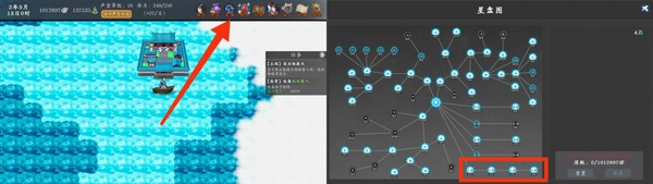界面右上角打开星图,使用星石碎片加点,星石碎片获取方式:主线/支线任务、悬赏任务、副本黑市购买、副本乞丐奖励、副本小游戏、大地图随机刷新、好感度达标后索要(第三章霁月谷的师太碎片有每5天刷新一次)
