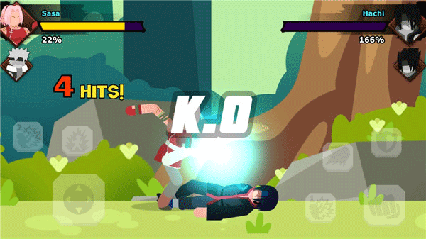 5、火柴人像素美术:采用Q版火柴人结合像素风格的角色设计,搭配卡通渲染与粒子特效,在复古视觉中呈现华丽忍术如螺旋丸、千鸟等。