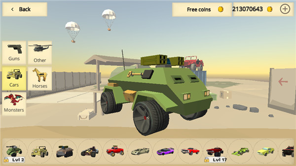 3、你可以随心所欲的利用金币来购买枪械、坐骑、直升飞机、恐龙等等。