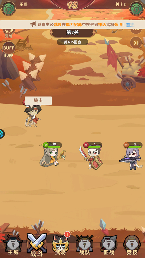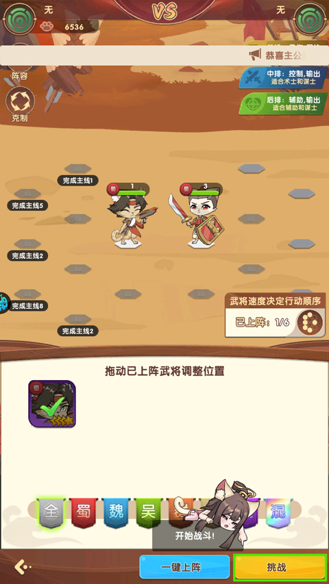 4、玩家的队伍中尽量兼顾输出和防御,将坦度较高的武将放前排挡伤害,确保C位稳定输出。