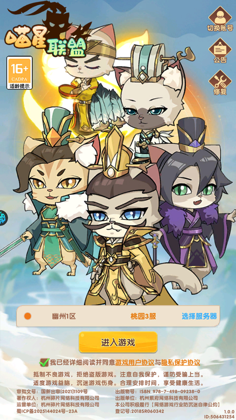 2、将三国和猫猫进行了融合,武将角色化身为猫咪名将。