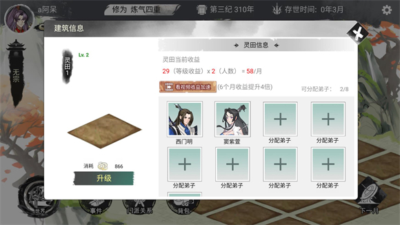 3、点击宗门里的建筑可以分配弟子来完成工作和任务.