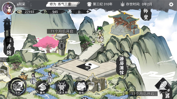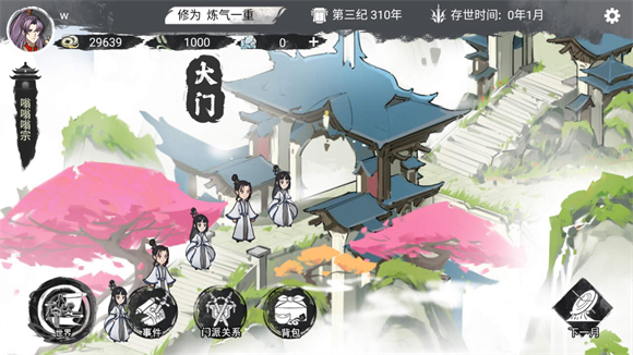 2.弟子招募,门派经营:修真旅途之中,将邂逅形形色色的弟子,各自拥有独一无二的天赋异能与专属技能。通过招募贤才、精心培养,不断壮大门派的核心力量;需运筹帷幄,制定科学合理的门派发展策略,主动投身修真界的门派纷争,与各方势力角逐稀缺资源、争夺核心地盘,逐步打造属于自己的顶尖门派。