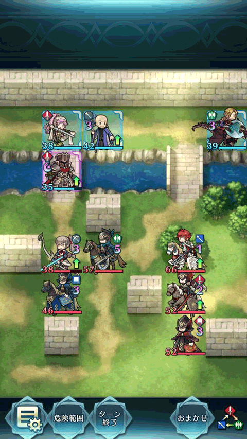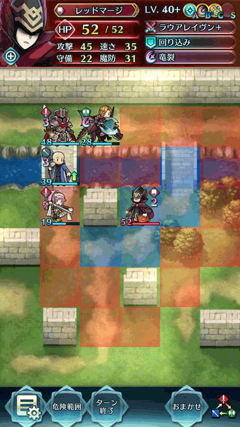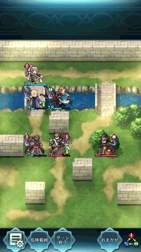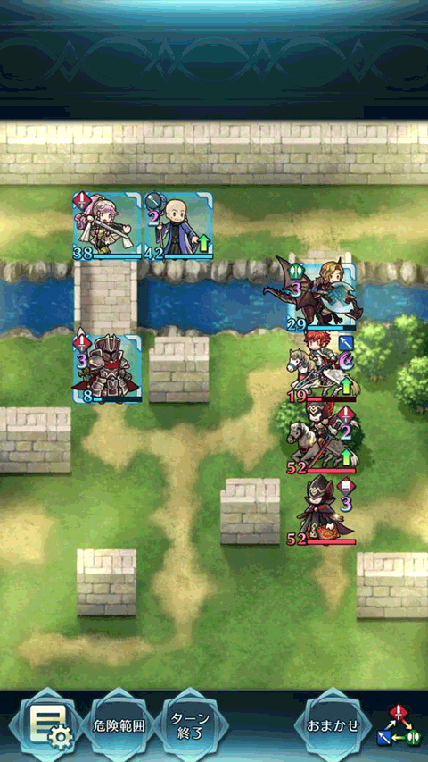 第一回合:纳西恩飞到墙角吸引敌军注意,其余三人按图站位。骑法单位会被增益后的小黑反击致死,拓海首先行动。