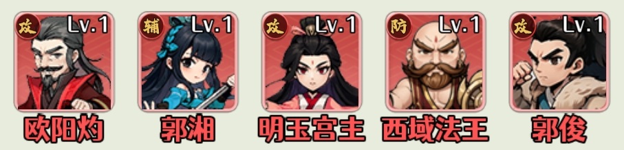 阵容玩法:优先培养郭俊,全屏攻击,可以对敌人进行全面打击,防守上优先培养格挡属性,同时依靠真气化身,可以为己方额外增加助力,最全面的侠客,而黄玲则可以为郭俊提供更持久的续航。欧阳灼最强单点输出,闯关打BOSS全靠他,单体伤害最高。