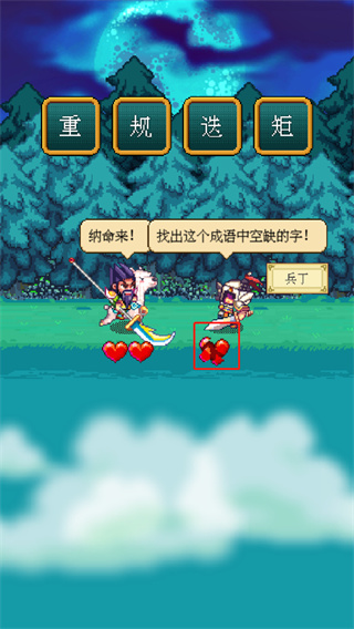 2、需要点击游戏下方的字来和游戏上方的字组成成语即可攻击;