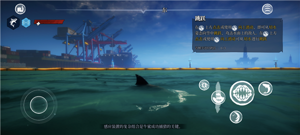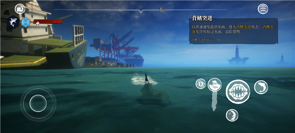 9、在游出水面后,可以点击撕咬下方的按钮,触发“背鳍突进”。